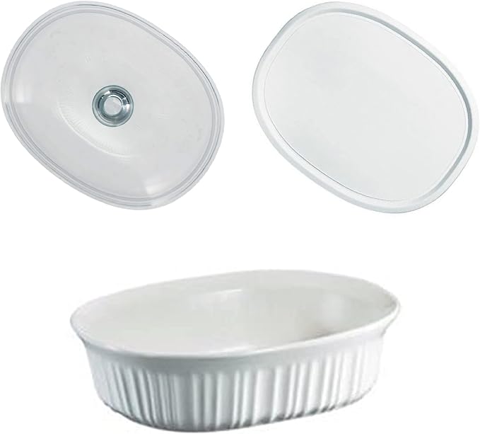 CorningWare French White 1.5 Quart Oval Casserole Bundle: 1.5 Oval with Glass and Plastic Lid