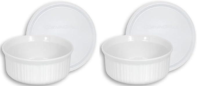 CorningWare French White Pop-Ins 16-Ounce Round Dish with Plastic Cover, Pack of 2 Dishes